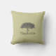 Un graphique d'un chêne se repose au centre des deux côtés de coussin. Personnalisez avec un nom de famille sur l'avant et deuxième nom de famille de verso. Customisez les couleurs d'arrière - plan pour assortir, ou, comme dans l'échantillon, pour se compléter et le décor de votre maison.