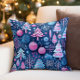 Coussin décorateur avec de mignons arbres de Noël blancs et roses.