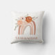 Cette coussin branchée et élégante dispose d'un arc-en-ciel boho, composé de différents tons neutres et d'un bouquet de fleurs orange et pêche. Ajoutez votre nom pour personnaliser.