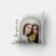 Un cadeau spécial pour votre soeur, que ce soit un membre de la famille ou une soeur de la sororité, ce design coussin moderne et élégant dispose d'un modèle de cadre d'arche géométrique moderne à personnaliser avec votre photo sélectionnée. Célébrez votre relation de soeurs et de moments spéciaux avec ce coussin personnalisé qui symbolise votre lien spécial et votre dévotion à l'autre. Montré ici avec du texte noir sur un arrière - plan blanc. Ce coussin est disponible en 2 tailles : 16 pouces de diamètre et 20 pouces de diamètre en tissu polyester ou coton.