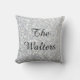 Cet oreiller à jetons d'argent a une finition brillante et votre monogramme ou nom de famille écrit dans un script de fantaisie. Aucune parties scintillant ou paillettes ne sont utilisées dans la fabrication de ce coussin, donc vous avez tout le glam et le coussin est encore doux au toucher.