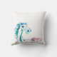 Un cheval de gambade d'esprit sauvage en acrylique d'arc-en-ciel sur le tissu montre le mouvement dans les courses de brosse pour l'écoulement et se sentir. Beaucoup de nuances des bleus à l'aigue-marine font un beau coussin décoratif, avec des conceptions des deux côtés. Art par Lilly Fluger de lillyarts.com.