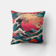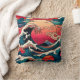 Un oreiller à la mode d'inspiration japonaise, cool, surmonté d'une énorme vague océanique, surplombe un superbe coucher de soleil rouge. Les couleurs vives ajouteront chaleur et drame à tout espace de vie. Cet oreiller jetable ferait un grand cadeau à quiconque adore l'art de style japonais.