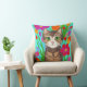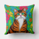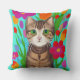 Coussin Art populaire Style Whimsical Chat et Fleurs