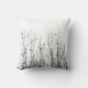 Coussin nature avec arbres et corneilles en noir et blanc.