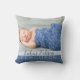 Cherchez la mémoire pour toujours avec ce coussin bleu pour bébé. Ce design présente une image de votre bébé avec le premier, le milieu et le nom de famille. Sur le dos, customisez le dessin rayé bleu avec la date de naissance de votre bébé, l'heure de naissance et le poids de votre bébé.
