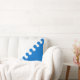 "Par pli sinistre nebuly argent et azure." Badge populaire pour la baronie des Cleftlands dans la Society for Creative Anachronism. Le dos du coussin est un motif médiéval qui coordonne les couleurs.