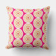 Ce design moderne et amusant présente de grands cercles oranges carrelés de près entourés d'anneaux concentriques alternant blanc et orange clair. L'arrière - plan est rose vif.