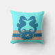 Coussin lumineux et joli, sur lequel une paire d'hippocampes partage un moment, et faire tellement juste au-dessus de votre initiale, qui est encerclée par une corde nautique. Accent doux pour une maison côtière ou pour augmenter un thème nautique.