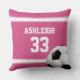 Voulez-vous ce design dans une combinaison de couleurs différente ? Veuillez nous contacter par l'intermédiaire de notre boutique GiftsBonanza avant d'acheter et nous serons heureux de vous aider dans votre demande personnalisée. Parfait pour le fan de football ou le joueur de football dont les couleurs de l'équipe sont rose et blanc, avec un style jersey de football design en rose avec bandes blanches et texte personnalisable pour leur nom et numéro. Un ballon de football fait également partie du design. Un cadeau amusant, sportif et féminin de football. Série promotionnelle : pgb1504