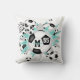 L'oreiller de cette fille sportive à lancer de soccer comporte une "explosion" de balles de football noir et blanc de taille variée et des formes turquoises, grises et blanches - personnaliser avec le nom de l'athlète, le monogramme et le numéro de maillot sur le devant et le dos - katz_d_zynes