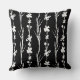 Un coussin contemporain noir et blanc avec des fleurs rayées anecdotiques.