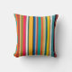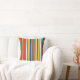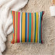 Cet oreiller de lancer a une conception de bandes verticales dans les couleurs modernes du milieu du siècle.