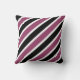 Bandes diagonales blanches, noires et violettes carré motif lancer l'oreiller.