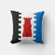 "Par sable pâle et azure, sur un argent bretassy pâle, une tour de gules." Badge populaire pour la baronnie des Downs du sud dans la Société pour l'anachronisme créatif. Le dos du coussin est un motif de style médiéval en couleurs coordonnées.
