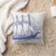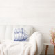 Élégant et élégant, cet oreiller est doté d'une illustration de goélette bleu marine et d'un arrière - plan blanc.