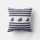 Elégants yachts nautiques à rayures bleues et blanches Jetez l'oreiller.
