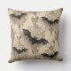This Gothic throw pillow has a design of bats and spider webs on it.