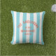 Coussin Beach House Nom personnalisé Blue Cabana Stripe