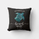 Coussin décorateur de maison de plage avec une tortue turquoise sur un arrière - plan noir. Personnalisé avec votre nom de famille et votre date d'établissement. Parfait pour votre maison de plage ou location de vacances. Contactez-moi pour obtenir de l'aide sur la personnalisation ou pour demander l'appariement ou la coordination des produits Zazzle.