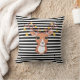 Coussin Beau Cerf sur Fond Rayé Noir et Blanc