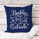 La conception saisonnière de coussin comprend un script élégant "Baby it's Cold Outside" design typographique avec des accents étoile et flocon de neige. La couleur bleu marine de l'arrière - plan peut être customisée pour coordonner avec votre décor de vacances.
