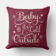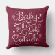 La conception saisonnière des coussins comprend des scripts "Baby it's Cold Outside", qui écrivent du texte avec des accents d'étoile et de flocon de neige des deux côtés. Merlot / vin rouge arrière - plan couleur peut être customisé pour coordonner avec votre décor de vacances.