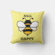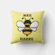 Bumble Bee jeter coussin ou coussin. BEE HEUREUX. Arrière - plan jaune pastel. Joli coussin estival.