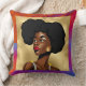Elégant coussin de l'accent, avec des graphismes d'une belle femme africaine portrait, avec un arrière - plan de feuille d'or faux. Joli ajout à la décoration des chambres.