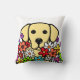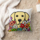 Beau coussin jaune d'illustration de Labrador pour les amoureux de les chiens qui aiment des chiens de labrador retriever. Les fleurs colorées et belles fleurissent autour du chien. Vous pouvez ajouter le texte comme vous voudrez. Créé par Naomi Ochiai du Japon.