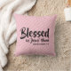 Coussin BÉNÉFICIÉ AU NOM DE JÉSUS Écriture chrétienne rose