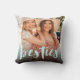 Célébrez votre amitié avec votre bestie avec ce coussin photo mignon avec des "besties" le long du fond en vert menthe clair écrit à la main en lettres. Le coussin revient à un subtil motif en diamant rose et blanc pointillé.