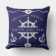 Coussin Bienvenue à bord de l'ancre de bateau bleu marine