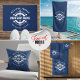 Coussin Bienvenue à bord Nautical Boat Nom Marine Bleu