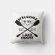 Épinez votre maison de vacances avec cet oreiller rustique-chic. Le design présente "Welcome to the Lake House" en caractères noirs boisés avec une illustration de corde et deux pagaies de canoë croisées. Customisez avec l'année où vous avez commencé la vie au lac! Grand ménage ou cadeau d'hôtesse, aussi.