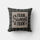 Coussin décorateur rustique de style champêtre avec plaid à damiers buffle noir et gris et burlap brun avec le texte "Farm Sweet Farm".