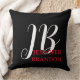 Coussin Black White Red Handwriting Monogram Add Name
