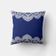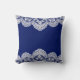 Un arrière - plan bleu roi brillant est magnifiquement contrasté avec une bordure en dentelle blanche complexe dans cette image, ce qui fait un beau coussin qui va égayer n'importe quelle chambre. Ajoutez votre propre texte customisé, si vous le souhaitez. *Remarque : l'image est imprimée sur la surface et ne contient aucune dentelle réelle.* **Créée à l'aide d'oeuvres achetées à Digital Design Boutique à l'adresse http://digitaldesignboutique.com.