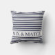 Blancs avec arrière - plan bleu marine Mix & Match coussin modèle. Bandes blanches sur une couleur arrière - plan personnalisable. Accédez au niveau de conception, entrez votre couleur préférée en tant qu'hexcode dans l'arrière - plan (avant et arrière), remplacez les lignes fines bleu marine et le texte bleu marine par votre couleur (avant et arrière). Beaucoup de joie avec ça ! Mélange maritime & Match terrasse terrasse décorations idées faites avec l'amour de l'océan #ybeedesign #ybeesea #navyblueandwhitepillows #mixandmatchpillows #mixandmatchwithstripes © Design y.BEE SEA