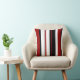 Cette conception présente des bandes verticales rouge noir blanc sur cet oreiller à lancer.
