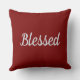 L'oreiller à lancer est montré avec un plaid sur mesure avec le mot "Béni" en blanc sur le haut gauche du coussin. Couleurs Plaid : Pêche, oranges-Citrouilles, Blanc, gris argenté et Bourgogne, l'envers est solide Bourgogne avec un grand gris argenté "béni" au centre. Customisez ce coussin ou achetez tel quel.