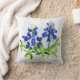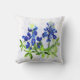 Jetez l'oreiller avec mon aquarelle Bluebonnets peint dans les tons bleu, violet et vert sur un arrière - plan blanc.