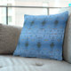 Un oreiller à projectile bleu esthétique avec un motif de surface de la côte orientale asiatique avec une pièce du poème visuel appelé "Scar Collector" qui a été initialement publié dans le volume I de la série Diamond Dust Poems From the Black Sea. Un oreiller à jetons rustique doté d'un design côtier bleu pour les propriétés balnéaires d'été ou d'inspiration océanique.
