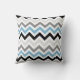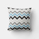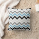 Motif Chevron bleu, noir, gris foncé, gris clair et blanc Chevron Zigzags Coussin.