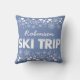 Coussin de voyage de ski de flocon de neige. Flocons de neige et points blancs sur un arrière - plan bleu. Customisez ce coussin de voyage de ski avec votre nom de groupe comme souvenir de l'événement.