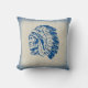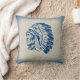 Silhouette bleue d'un chef indien entouré par un cadre vintage bleu fané.