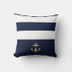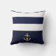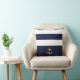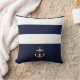 Coussin Bleu et blanc rayé d'ancre dorée chic nautique