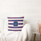 Bleu Marine Blanc Monogramme nautique Coussin de bandes modernes