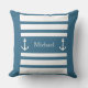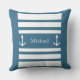 Bleu Nautique Et Blancs Ancre Nom Jeter Oreiller. Vous pouvez personnaliser en écrivant du texte (nom, nom de famille, monogramme...).