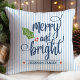 Accueillez la saison des fêtes avec ce joyeux coussin de Noël qui présente un message de vacances simple qui lit «Merry and Bright», accentué de feuilles de houx vertes et de baies rouges, un fond rayé bleu rustique et un nom de famille personnalisable. Ce design est simple et minimaliste, et il séduira les amateurs de décoration de style fermier, cottage et campagne. Personnalisez la zone de texte pour répondre à vos besoins.